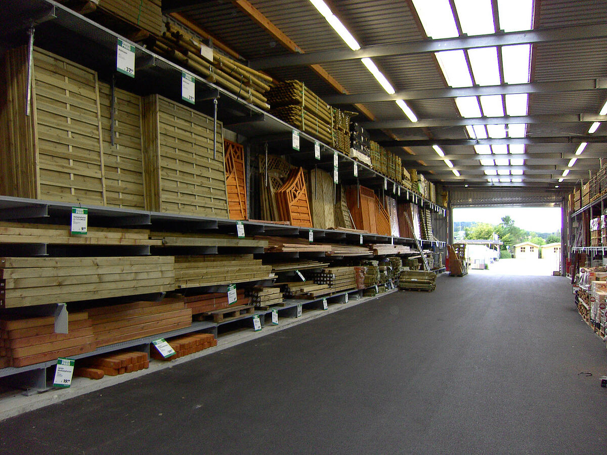 In DIY-Märkten, Gartencentern und z.B. in Malerfachmärkten werden Lagerflächen für schwere Güter wie Holz, Farben, Werkzeuge oder Sand-und Zementsäcke benötigt. Für diese Anwendungsgebiete gibt es robuste Palettenregale von OHRA. Sie bestehen aus warmgewalzten Stahlprofilen statt aus dünnem Blech und erweisen sich daher gerade bei hohen Lasten als effizient und sicher. Diese Regaleigenschaften sind besonders dort zu beachten, wo Personal oder Kunden verkehren. Die hohe Qualität garantiert eine langlebige und somit wirtschaftliche Lösung für Ihr Lager.