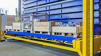 Übergabestation eines automatischen Kommissionierlagers.