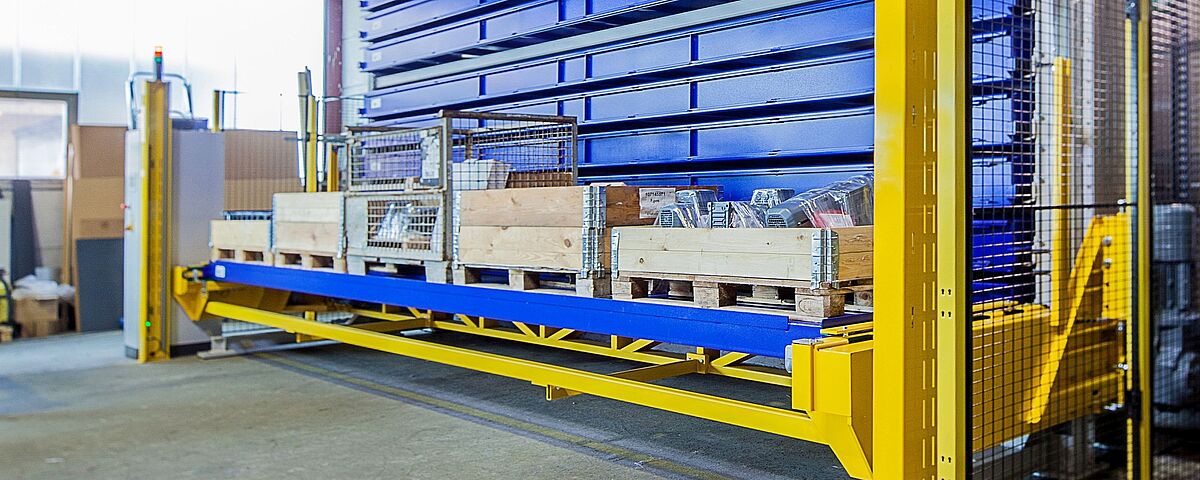 • Effiziente Ein- und Auslagerung durch integriertes Regalbediengerät (RBG)