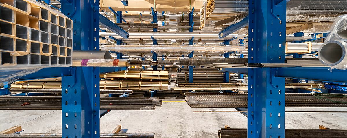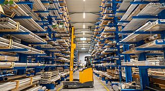 Um eine höhere Lagerkapazität und eine effizientere Logistik zu erreichen, rüstete Adamet-Niemet sein Rohmateriallager mit Kragarmregalen von OHRA aus. Die bisherige Lagerung auf dem Boden und in mehreren kleineren Regalen bot für das wachsende Geschäft des Metallgroßhändlers nicht mehr ausreichend Kapazitäten. Zudem führte das häufig notwendige Umlagern immer wieder zu Schäden an den eingelagerten Blechen, Stangen und Profilen. Mit mehreren Zeilen von bis zu 8.570 Millimeter hohen Kragarmregalen konnte das Unternehmen sowohl neue Lagerkapazitäten schaffen, als auch die Ein- und Auslagerprozesse beschleunigen sowie Beschädigungen an der empfindlichen Lagerware reduzieren.