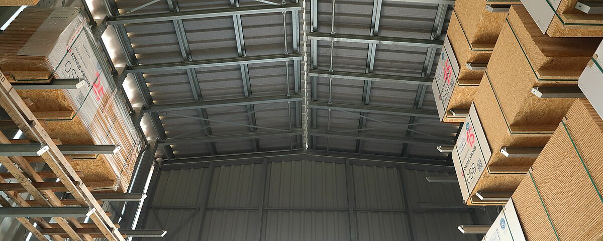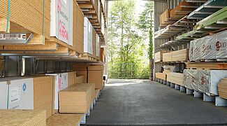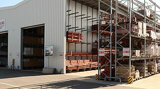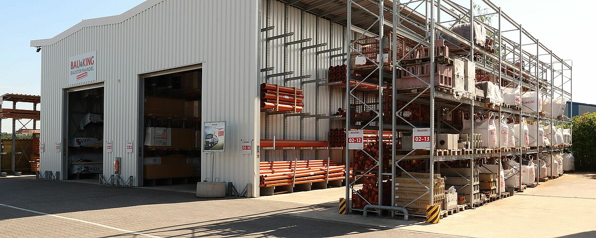 Im Rahmen einer Zusammenlegung zweier Standorte organisierte BAUKING an seinem Standort Lorup auch die Lagerung seiner Holzprodukte neu. In einer neuen, aus Kragarmregalen aufgebauten Regalhalle von OHRA finden die Kunden des Baustoffhändlers heute alle Holzwaren zentral an einem Ort. Die Regalanlage bietet zudem deutlich mehr Lagerkapazitäten, so dass BAUKING auch eine größere Anzahl verschiedener Artikel bevorraten kann. Um den Außenlagerbereich sicher zu entwässern, weist die Bodenplatte, auf der die Halle steht, ein Gefälle von 0,7 Prozent in zwei Richtungen auf. Durch die Aufhängung der Kragarme in einem engen Lochraster und eine spezielle, flexible Dachkonstruktion kompensierte OHRA das Gefälle.
