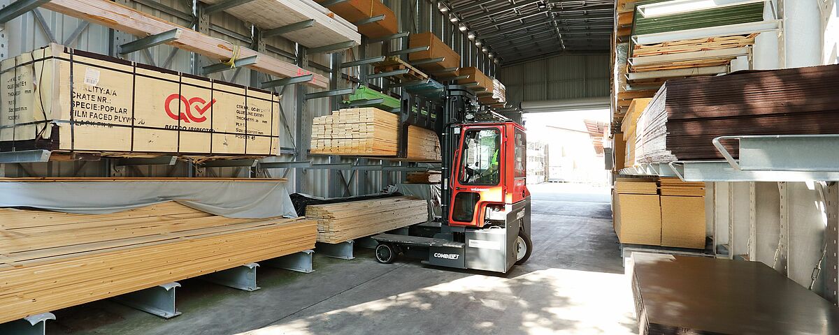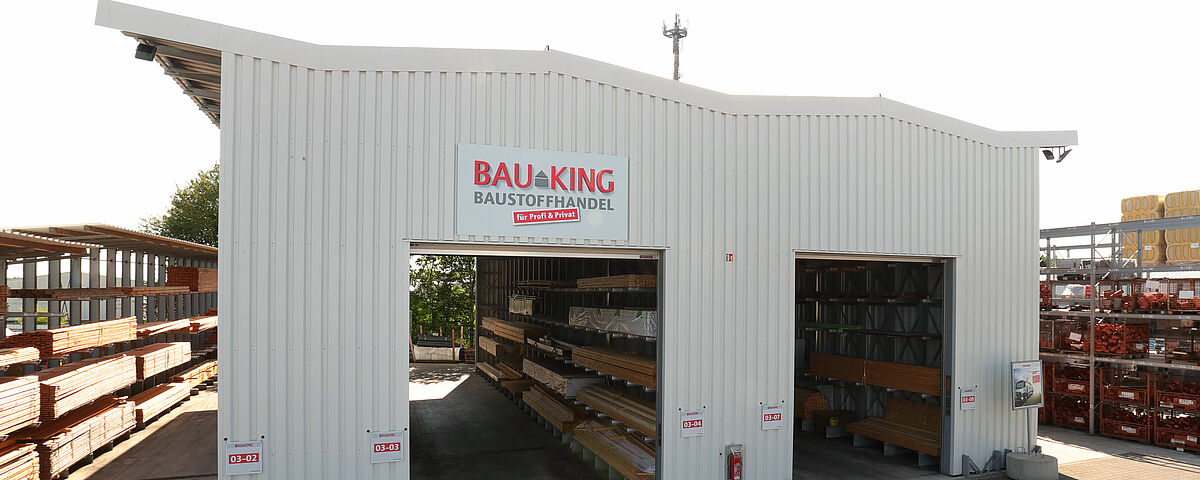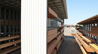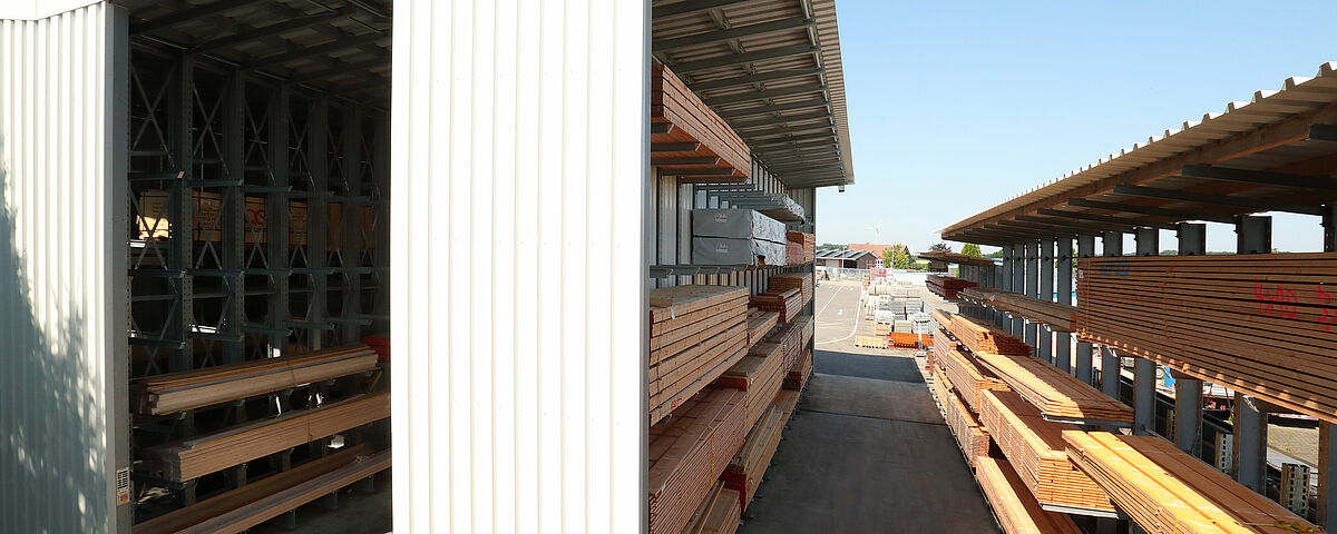 Um seinen Kunden einen besseren Überblick und schnelleren Zugriff auf die Holzwaren zu ermöglichen, entschied BAUKING sich, alle Holzwaren am Standort in der neuen Regalhalle zentral zu lagern. Eine derartige Regalhalle, bei der die Regale als tragende Konstruktion für Dach und Wände fungieren, ist deutlich flexibler und preisgünstiger als eine klassische Lagerhalle. BAUKING plante eine Halle, die aus drei je rund 20 Meter langen Kragarmregalzeilen aufgebaut ist. Die über 7,8 Meter hohen Kragarmregale sind mit bis zu sieben Lagerebenen ausgerüstet.
