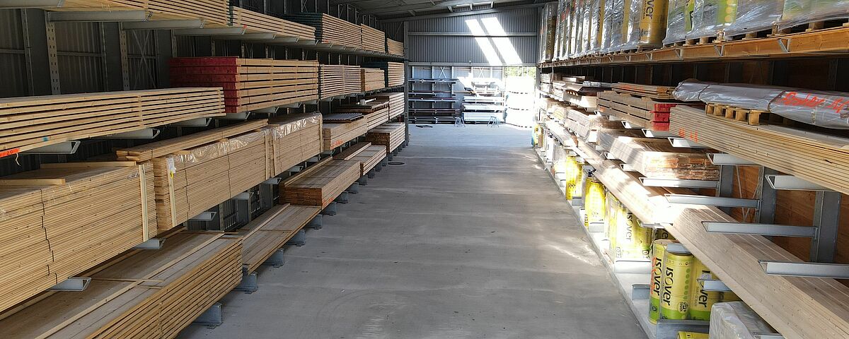 „Unsere Kunden erwarten zudem bei immer mehr Baustoffen, dass sie witterungsgeschützt gelagert werden“, so Thomas Walter. Möglich machen das unter anderem Regalhallen, die OHRA an beiden Standorten des Unternehmens errichtet hat. Die Kragarmregale dienen dabei gleichzeitig als tragende Konstruktion für Dach und Wände - das ist kostengünstiger und schneller zu realisieren als der Bau einer separaten Halle, in die dann die Regale gestellt werden. Weitere Regale im Außenbereich wurden zudem von OHRA mit einem integrierten Dach ausgerüstet. OHRA lieferte hierzu auch die für die Genehmigung erforderliche Statik und Planung, sodass das Verfahren schnell abgeschlossen werden konnte.