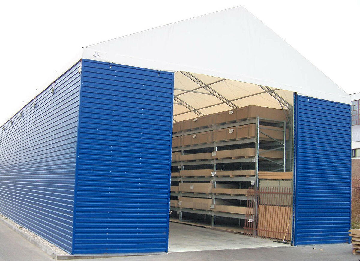 Erste Investitionen in OHRA-Regale erfolgten bei Damar bereits vor sechs Jahren. Überzeugt von der Qualität, rüstete das Unternehmen jetzt auch das jüngste Lager mit Palettenregalen des Kerpener Spezialisten für Kragarm- und Palettenregale aus. Hier werden 2070 x 2800 Millimeter große Spanplatten in bis zu 1800 Kilogramm schweren Paketen gelagert. Die Besonderheit dabei: Das Lager wurde in einer Zelthalle eingerichtet. Hierbei zeigte sich die hohe Flexibilität der Regallösungen von OHRA, denn um den Platz bestmöglich zu nutzen, wurde der Abstand der Regalständer exakt auf die Rahmenkonstruktion der Zelthalle angepasst. Dazu hat OHRA die Länge der Längstraversen auf 2950 Millimeter geändert, so befinden sich die Ständer des Plattenregals genau vor den Deckenstützen des Zeltdaches – damit kann der zur Verfügung stehende Platz bestmöglich genutzt werden.