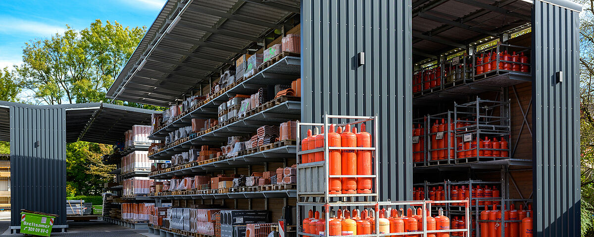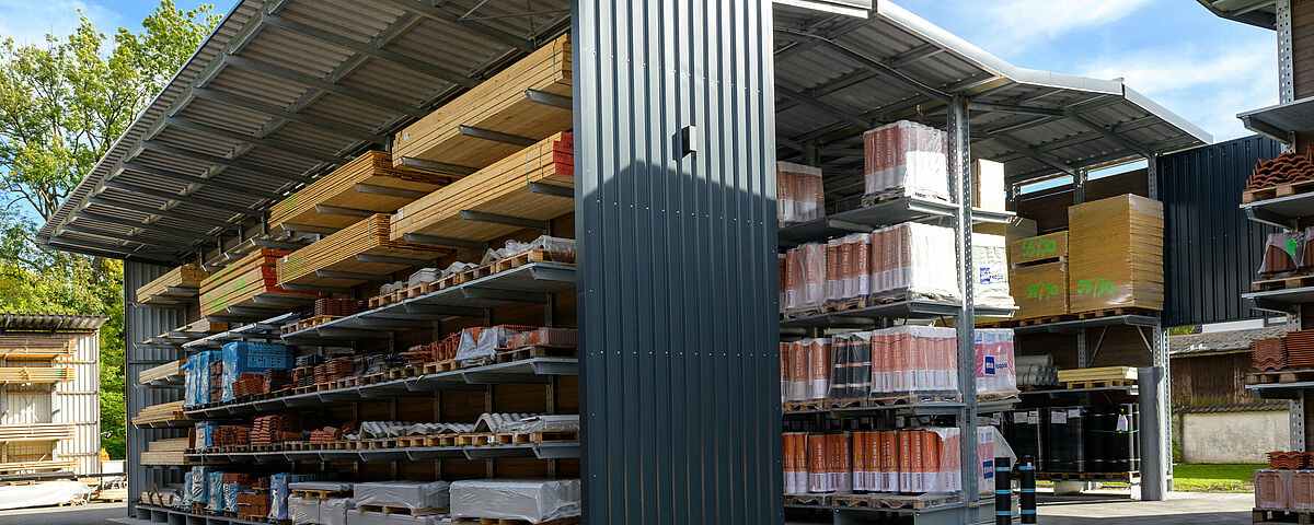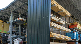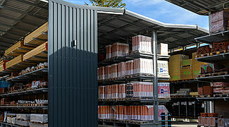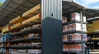 Gaigher + Penn, ein im Münchner Norden beheimateter Fachhändler für Baustoffe rund um Dach und Fassade, hat die bisher eingesetzten, teilweise selbst geschweißten, Regale durch eine professionelle Regalanlage von OHRA ersetzt. Die Kragarmregale bieten aufgrund ihrer Tragfähigkeit nicht nur ein Plus an Lagerkapazitäten, sondern auch deutlich mehr Sicherheit für die Mitarbeiter. Zudem schützt die integrierte Dachkonstruktion die Waren vor der Witterung. Durch die neue Regalanlage konnte das Unternehmen zudem in der Bestandshalle Platz für ein umfassendes Portfolio an Blechen schaffen – und damit seinem Anspruch unterstreichen, Vollsortimenter im Bereich Dach und Fassade zu sein.