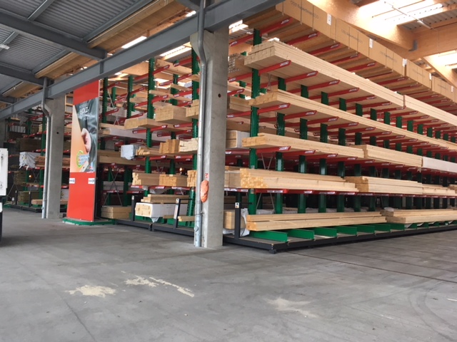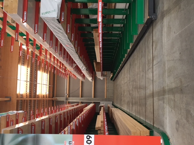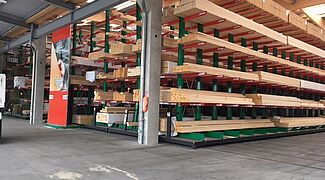 In dem Lager werden die Baustoffe entsprechend der Bestellungen der Handwerker und privaten Bauherren kommissioniert. Zu den dort gelagerten Artikeln gehören diverse Baustoffe, bis zu 13 Meter lange Hölzer und verschiedene Sackwaren. Um den Kunden ein möglichst großes Portfolio an Waren bieten zu können, stand bei der Modernisierung vor allem eine Erhöhung der Lagerkapazitäten im Fokus – bisher wurden die Artikel ausschließlich in mehrzeiligen Kragarmregalen gelagert.