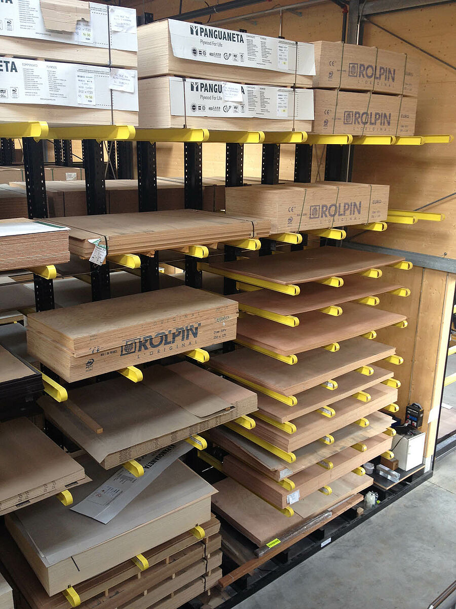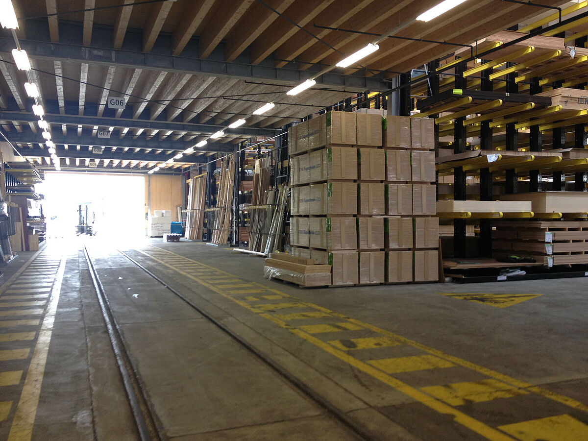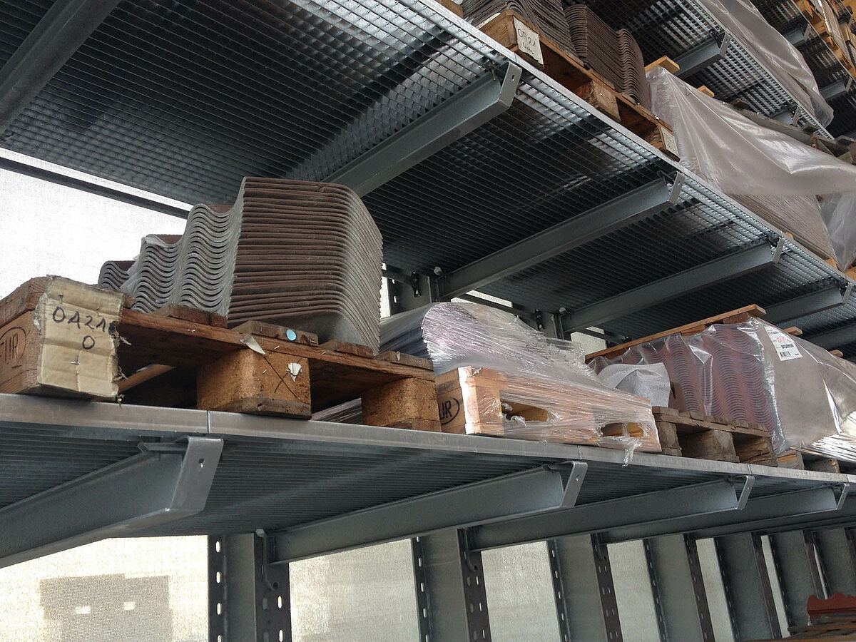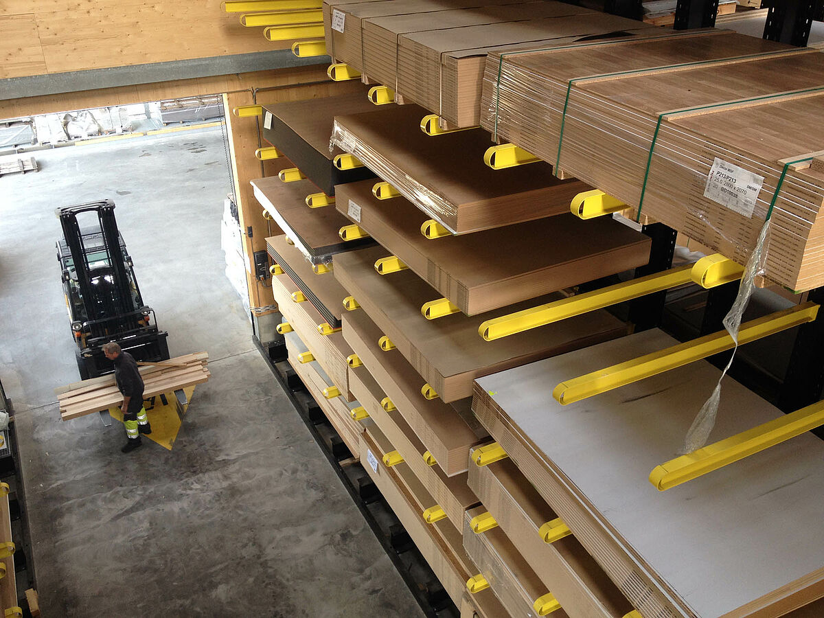 Das Lager in Biel ist in zwei Drive-through-Zonen auf rund 3000 Quadratmetern aufgeteilt. In der Halle montierte OHRA rund 600 laufende Meter Kragarmregale mit 9 Meter Höhe, sieben Lagerebenen und überwiegend 2,5 Meter tiefen Kragarmen, die von Vier-Wege-Staplern bedient werden. Vertikalregale am Ende der Regalzeilen ermöglichen zudem eine übersichtliche Lagerung von Leisten, Profilen und Rohren. Paletten- und Kragarmregale in feuerverzinkter Ausführung im Außenbereich bieten Platz für weitere 600 Paletten. Für die Lagerung von Dämm-Materialien ist eine 1000 Quadratmeter große Bühne in die Hallenkonstruktion integriert.