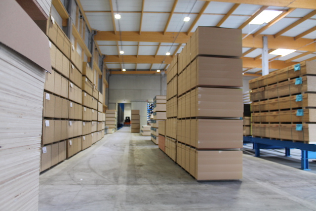 Um die Prozesse im Wareneingang zu beschleunigen, hat OHRA zudem speziell auf die Bedürfnisse von Hue-Socoda zugeschnittene, 90 Zentimeter hohe Konsolen geliefert. Auf ihnen werden die angelieferten Plattenpakete zwischengepuffert, so dass sie schnell und leicht von den Staplern in den Regalbereich transportiert werden können.