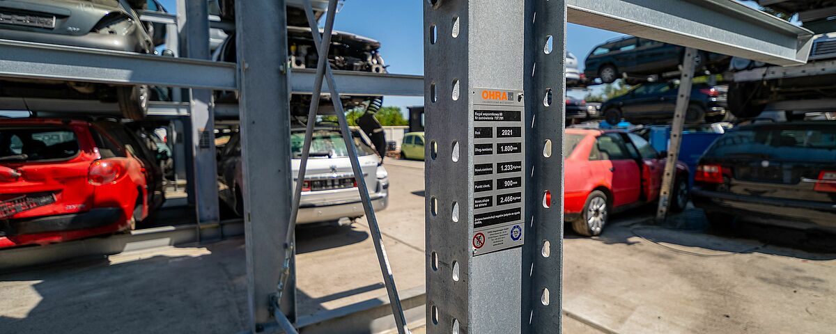 Insgesamt dreizehn knapp vier Meter hohe Regale mit jeweils drei Lagerebenen installierte OHRA auf dem Außengelände des Autoverwerters. Die Kragarme sind eingehängt und somit sehr einfach höhenverstellbar für unterschiedliche Fahrzeuge. Jeder der 1.800 Millimeter langen Kragarme kann dabei mit bis zu 1.233 Kilogramm belastet werden. Die Regale entsprechen den Anforderungen an eine sichere und umweltfreundliche Lagerung der europäischen Richtlinien zur Wiederverwertung und Aufbereitung von Altfahrzeugen. So war die Erteilung der – in Polen erforderlichen – Baugenehmigung für das OHRA-Regalsystem kein Problem.