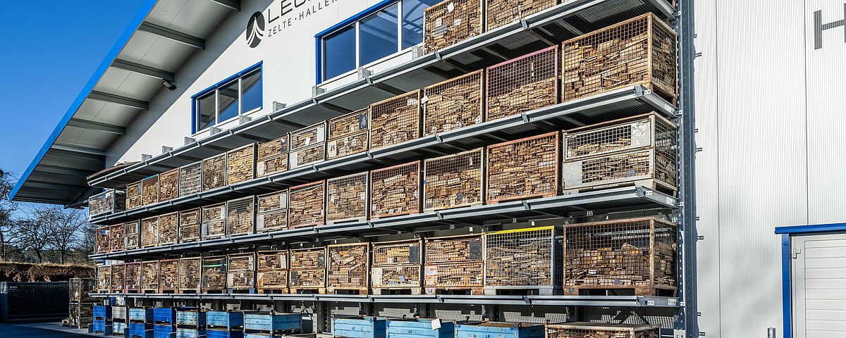 Auch Zelte und Leichtbauhallen benötigen einen trockenen Platz, auf dem sie bis zum nächsten Einsatz warten können. Die Firma LEUBE Zelte und Hallen aus dem baden-württembergischen Mudau im Herzen des Odenwalds hat daher eigens eine geschlossene, isolierte Halle als Materiallager errichtet. Bis dato wurde das Material bis zur Vermietung oder Verkauf in einem Blocklager nach dem chaotischen System gelagert. Die neue Halle bietet dagegen mit Kragarmregalen von OHRA eine deutlich effektivere Nutzung der Lagerfläche. Zudem können dank der übersichtlichen Lagerung mit Festplatzordnung die Aufträge erheblich schneller kommissioniert werden.