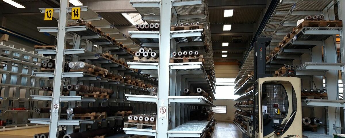 Reifenhäuser Reiloy rüstete dazu ein 1.200 Quadratmeter großes Lager mit Regalen von OHRA aus: Das Unternehmen ist einer der Marktführer für Schwerlast-Lagertechnik in Europa. Robuste Kragarm- und Palettenregale aus warmgewalzten Stahlprofilen kombinieren hohe Traglasten mit schlanker, platzsparender Bauweise. In der Lagerhalle von Reifenhäuser Reiloy installierte OHRA fünf zwischen 20 und 30 Meter lange Regale mit jeweils sieben Lagerebenen. Jeder der über 5,5 Meter hohen Ständer ist für eine Last von insgesamt 15.600 Kilogramm ausgelegt, jeder der 800 Millimeter langen Kragarme trägt bis zu 1.300 Kilogramm. Dabei sind die Kragarme flexibel eingehängt und können jederzeit ohne Werkzeug stufenlos verstellt und so an unterschiedliche Höhen der Lagerware angepasst werden. Um zu vermeiden, dass die Zylinder und Schnecken bei der Lagerung und dem Transport beschädigt werden, lagert Reifenhäuser Reiloy sie auf Paletten. Daher rüstete OHRA die Lagerebenen mit Gitterböden aus. Jeder dieser Böden ist mit 1.600 Kilogramm pro Quadratmeter belastbar. So können auch die schwersten Bauteile flexibel in den Regalen eingelagert werden. Die Bedienung der Regale erfolgt dabei platzsparend mit einem Seitenstapler – an den Regalfüßen angebrachte Führungsschienen „leiten“ den Stapler dabei sicher durch die Gänge.
