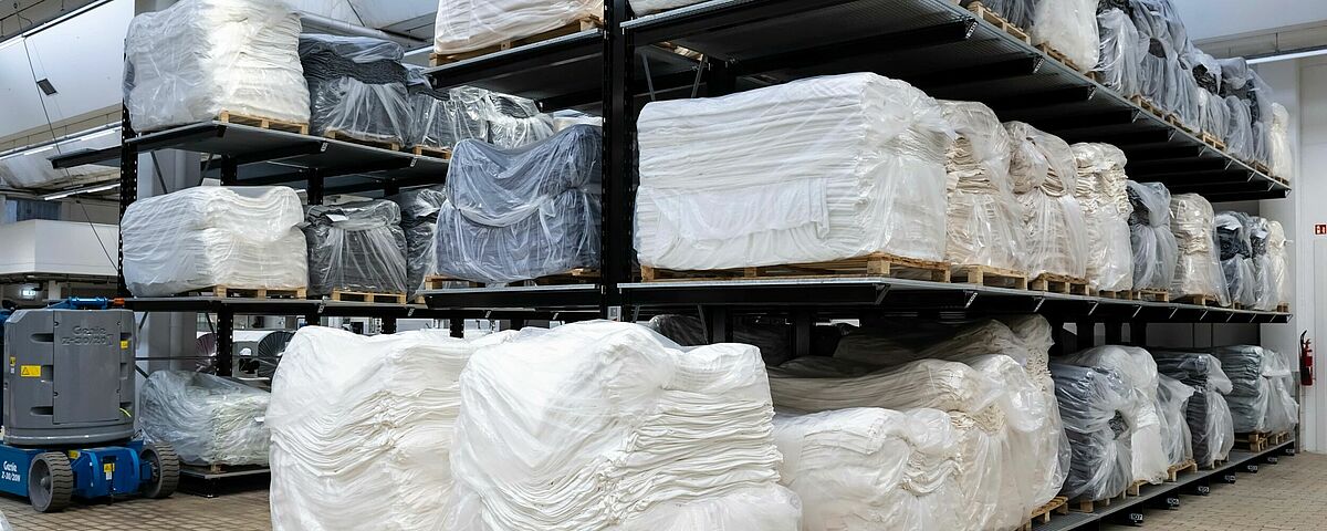 trigema, Deutschlands größter Hersteller von Sport- und Freizeitbekleidung, kann durch die Umstellung von Boden- auf Regallagerung seine Produktion deutlich besser versorgen. Dazu installierte OHRA Kragarm- und Palettenregale, in denen die in der eigenen Strickerei produzierten Stoffe zwischengelagert werden, bevor sie zur Veredelung in die Ausrüstung gelangen. Gitterroste ermöglichen dabei die Lagerung der Stoffe in unterschiedlichen Zuständen, unabhängig vom Format oder den Lagerhilfsmitteln. Dank der Lagerung in den OHRA-Regalen konnte trigema die Effizienz der Produktion um 5 Prozent steigern.