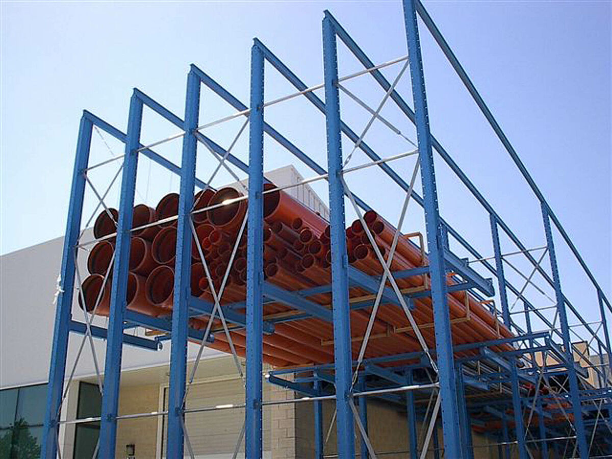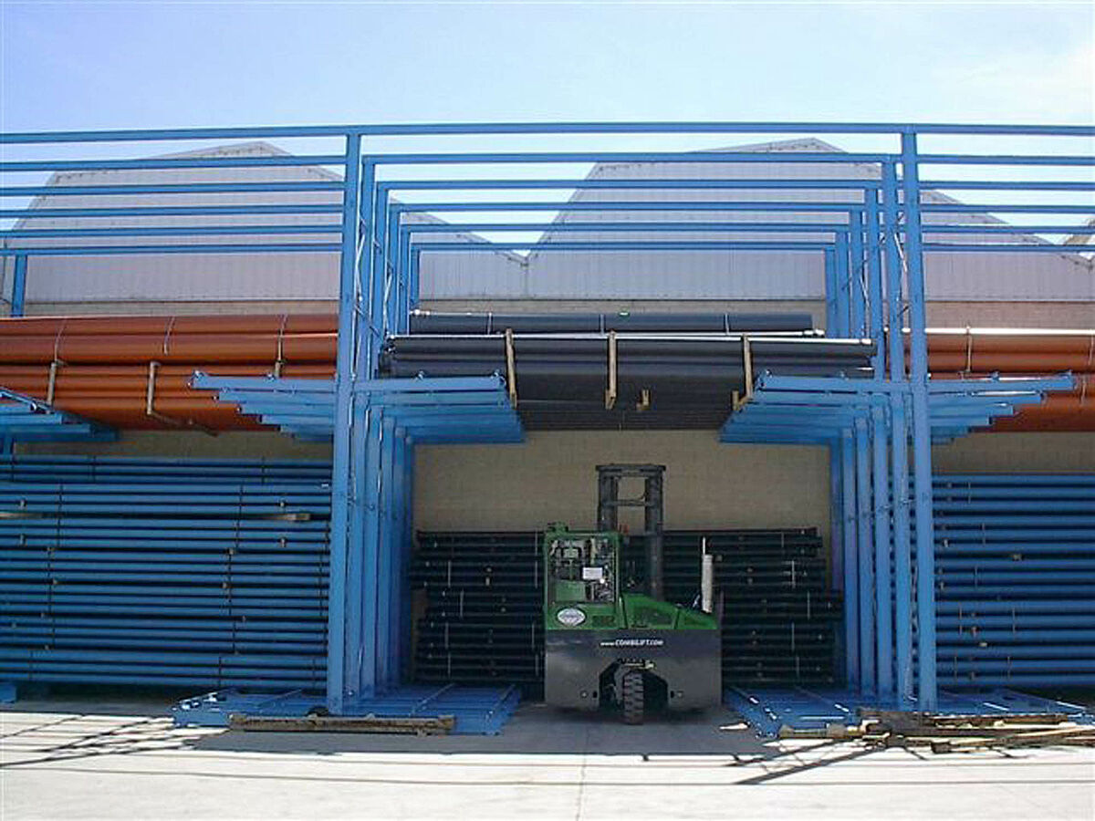 Daraufhin erarbeitete der Fachberater anhand der gewonnenen Informationen ein Lagerkonzept für die unterschiedlichen Anforderungen an die anspruchsvolle Lagerung. Das Konzept sah vor, die voluminösen PVC- und Metallrohre in Einfahrregalen zu lagern. Dieses Regalsystem ermöglicht die Lagerung von Rohrbündeln aus gleichen als auch aus verschiedenen Sorten und Abmessungen. Je nach Bedarf können diese Artikel in verschiedenen Ebenen kompakt und platzsparend gelagert werden.